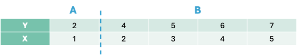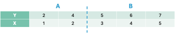 Let’s split the data in the first split point on the left hand side - an X value of 1.5. That would mean we have two groups - A and B.